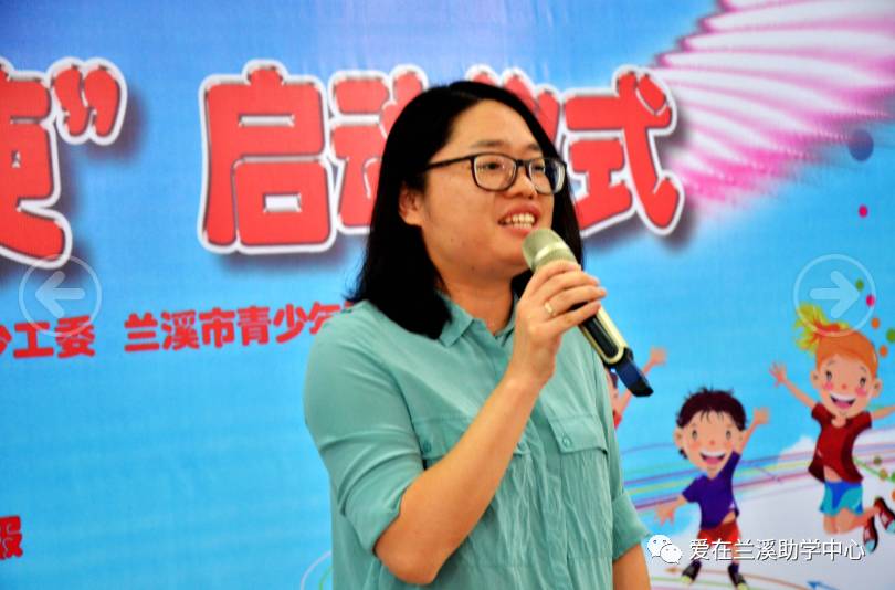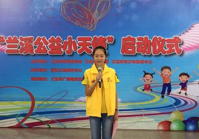 共青团兰溪市委书记童雪菲,教育局党委委员、市少工委主任李健平,团市委党组成员、市志愿者协会理事长曹仙雅,市少工委常务副主任、青少年宫主任刘建有,聚仁学校校长童国强,诸暨市1加1义工服务中心负责人俞忠达,合众融公益基金会秘书长金利宾,浦江龙峰公益负责人朱光锋、台州市春天里公益助学团秘书长,路桥区社会促进会副秘书长季匡斌参加此次“公益小天使”启动仪式。