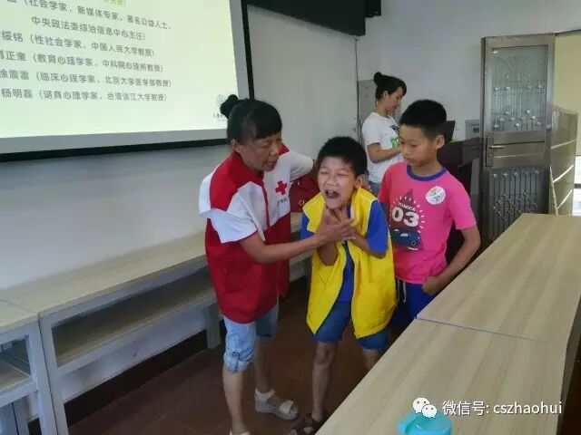 点击看大图 1 第一课:五防教育 儿童安全教育不可小视,防性侵、防拐卖、防校园暴力、防灾害、防意外。五防课程教小天使们学会正确保护自己,和坏蛋说NO!NO!NO! 点击看大图 2 第二课:交通安全 马路杀手随处可见,交通安全不可小视。保证交通安全的前提就是首先必须遵守交通规则。那么交通标识交通规则你都了解吗?走,跟着红十字会的志愿者老师一起去学习吧! 点击看大图 3 第三课:消防安全 不同的场所遇到火情,所用的灭火器材可不一样哟!你知道正确的使用灭火器吗?你又知道怎样拨打紧急求救电话吗?消防安全课堂开课了,赶紧和小天使一起去学习吧! 点击看大图 4 第四看:急救课堂 生命只有一次,学会正确的急救常识,在生命遇到危险时也许就能救人一命!当然学会救助他人的前提,必须首先学会保护自己,学会正确的急救方法,才能救人于危难之中。 暑假来了,每年的假期都是青少年儿童事故频繁发生的时期。通过此次活动,小天使们在活动中掌握了必要的自我防范知识和提升了安全意识!