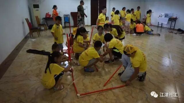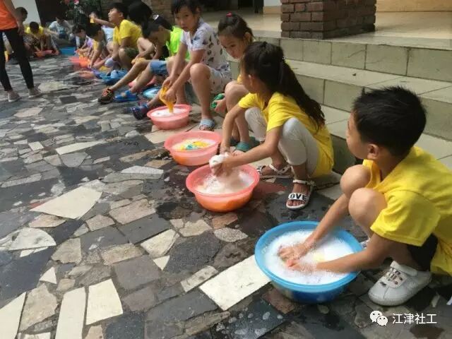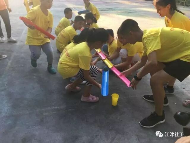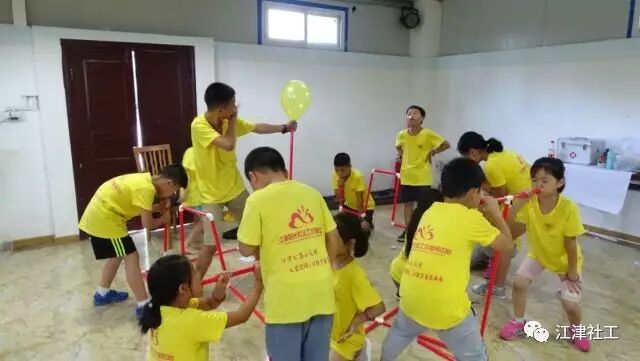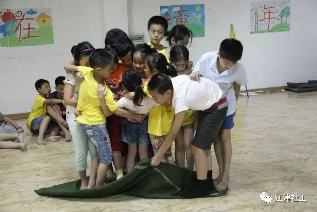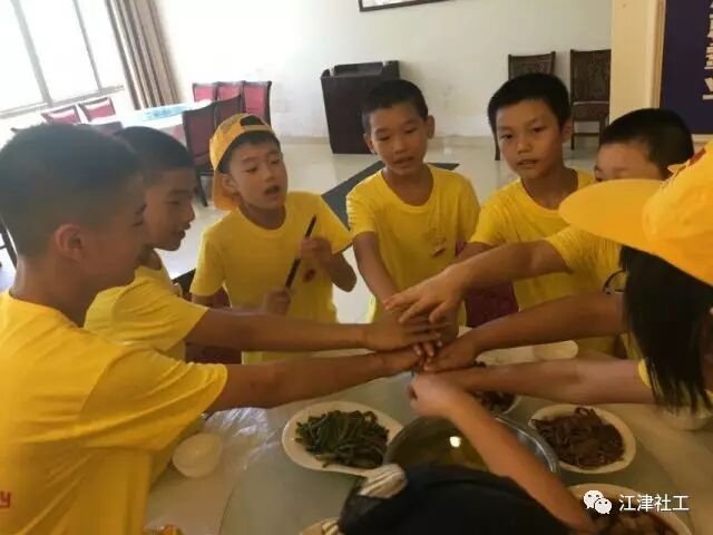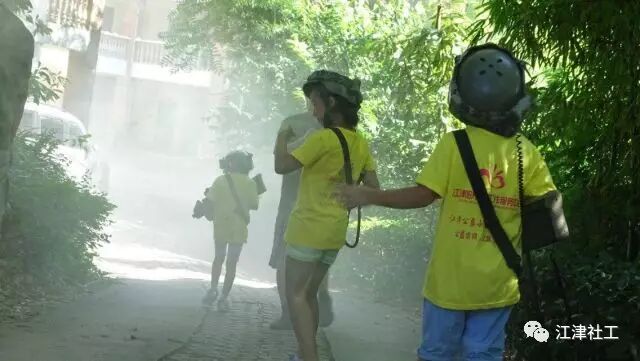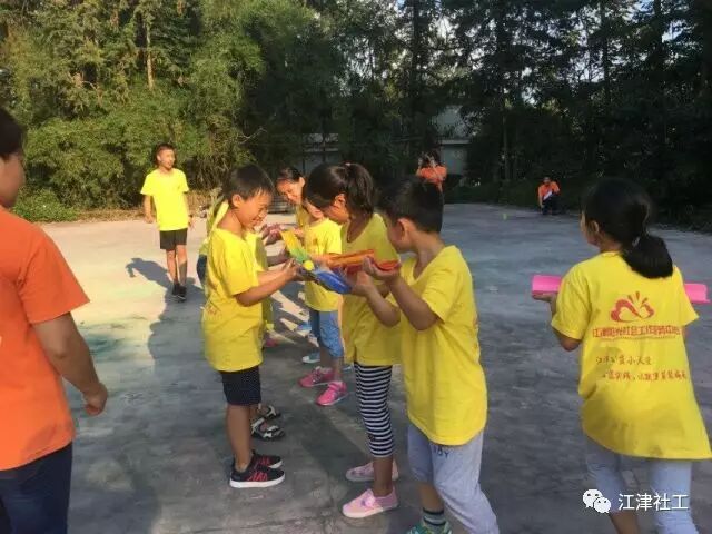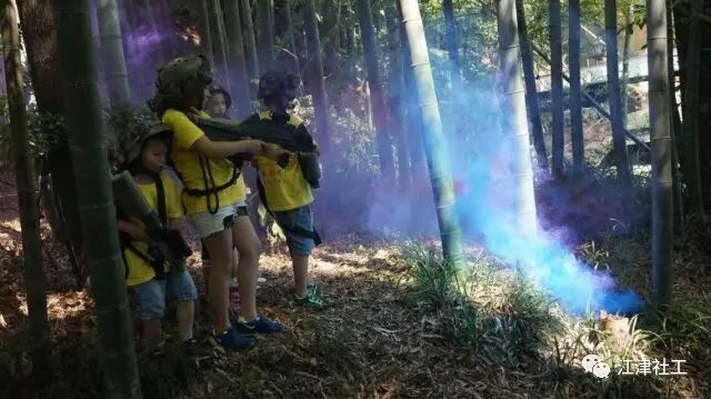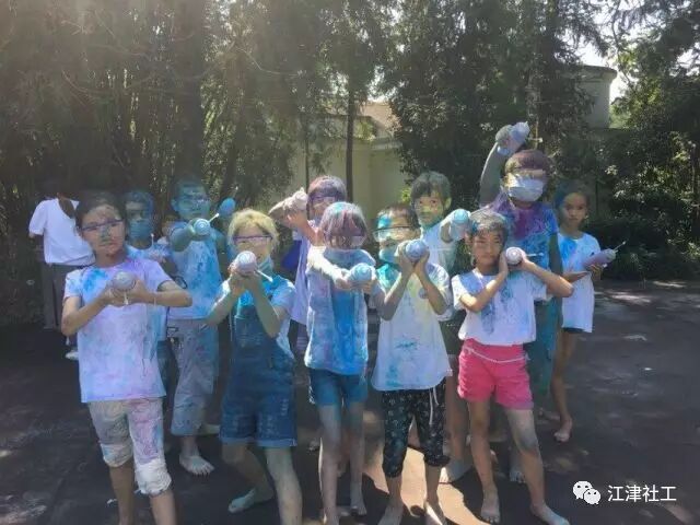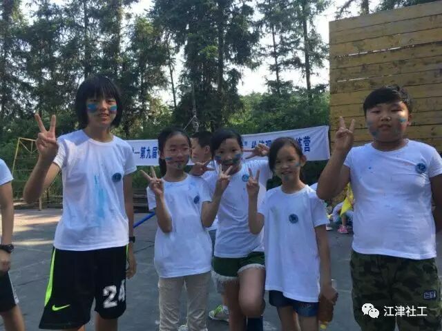 我的小团队 第一天,秦老师带着大家进行破冰游戏,在这一天里,小营员们互相认识,互相介绍自己,不但认识了许多新朋友,也第一次有了自己的队名、队歌、队徽、队规、队雕......,让自己找到了团队归属感。 彩色童年 第二天,由教官带着大家玩了“彩粉嗨”,营员们尽情的抛洒、涂抹彩色粉末,一起体验疯狂、多彩、纵情的彩粉嗨,不但绘制了自己的彩色童年,也感受到了团队、拼搏的可贵。 真人CS 第三天,也是很多孩子最期待的一天,因为孩子们都参加了真人CS大战,穿上装备、拿上枪支,孩子们仿佛成为了一个真正的战士,在丛林里奔跑、跳跃、射击,在遭遇战和丛林战中体验英雄的感受。 呼吸的力量 在这个环节中,孩子们不但担当了工程师,亲手搭建了一个呼吸机,最后通过集体呼气来实验呼吸机是否成功,将呼吸机顶端的气球吹爆成功,这个活动需要每个人全身心的投入和配合,任何一个人的疏忽都将导致整个任务的失败,但营员们还是很好的完成了这个挑战。 珠行万里 珠行万里这个游戏是营员们通过共同传递一个圆球,让大家感受团队间有效的配合、衔接以及自我控制能力,使大家懂得了为了实现共同的目标以及团队的责任感,每个人都要做好自己的环节并相互配合。 蛟龙出海 蛟龙出海环节通过营员们的通力合作,使营员认识到团队的成绩不仅仅在于个人能力的强弱,更在于团队的配合与扶持。 独立自主 离开父母,营员们并没有任何不适,反而得到了更好的成长,不但学会了自己清洗衣物,还适应了自己睡觉,更与队友一起当了“光盘侠”。 团队成长 在本期夏令营中,营员们一起完成了许许多多的挑战,在这些挑战中,有些队员可能做的要差一些,但却没有一个队伍选择过放弃和抱怨,只是默默的在相互的理解和帮助下斩获成功,收获成长。 爱在童年 公益小天使 江津阳光社工希望通过暑期夏令营的方式,培养营员良好行为习惯,提升营员的自信心和沟通技巧,让孩子们在快乐中成长,度过一个有意义的暑假。 四天三夜的夏令营结束了,有位营员在总结中写道:从夏令营开始,我拓开了视野,增加了知识,认识了各种各样的朋友,夏令营每个老师的教诲,每个教练的批评都使我知道自己曾经的不足与缺陷,改正自己的缺点,这些经历是我人生中的一个片段,也是我人生中刻骨铭心,难以忘记的一个片段,我爱这个夏令营。