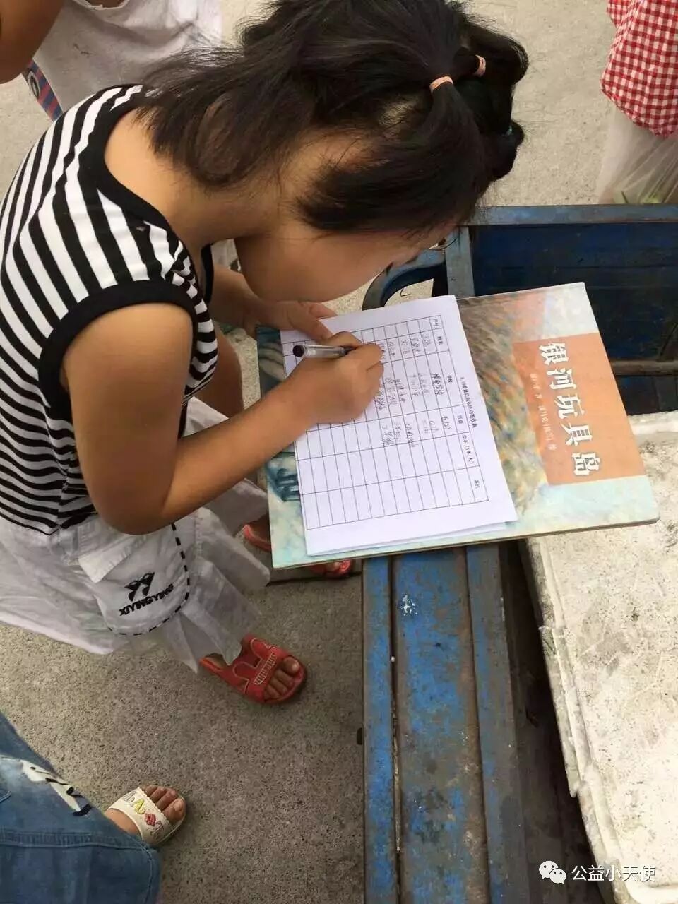 小天使说:“小妹妹高兴的拿着书填写登记表,而且她写得一手好字,相信这时候她的内心也是无比快乐的!”